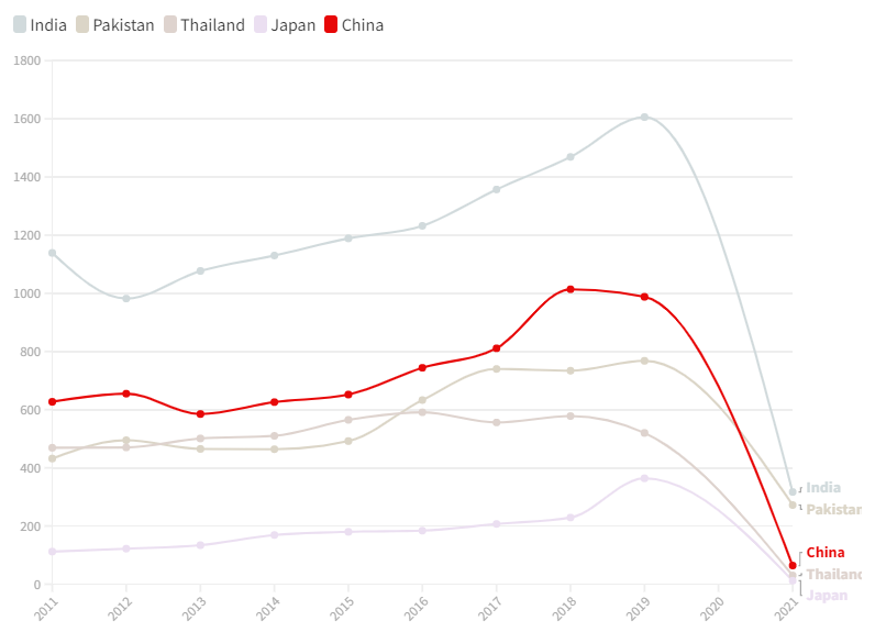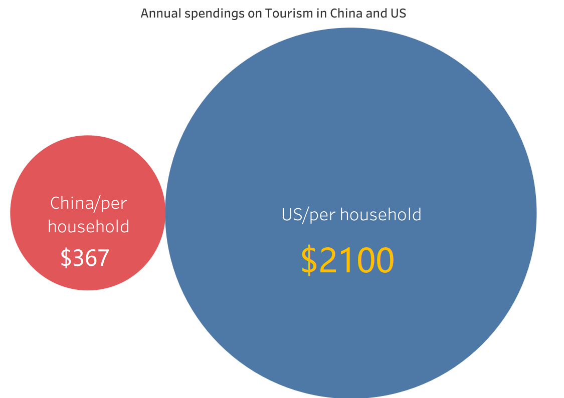 China per household spent $367 annually in 2019 while one household in US spent $2100