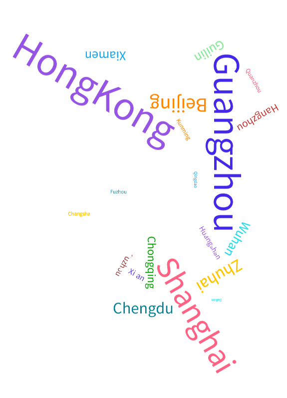According to relevant data, the most frequently visited Chinese Cities are Guangzhou, HongKong, and Shanghai.