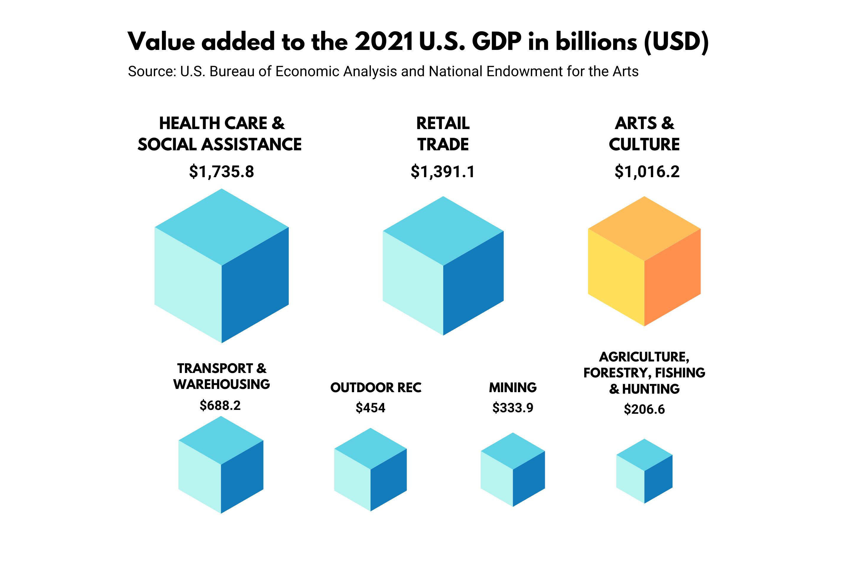 - National Endowment for the Arts. “New Data Show Economic Activity of the U.S. Arts & Cultural Sector in 2021,” March 15, 2023. https://www.arts.gov/news/press-releases/2023/new-data-show-economic-activity-us-arts-cultural-sector-2021.