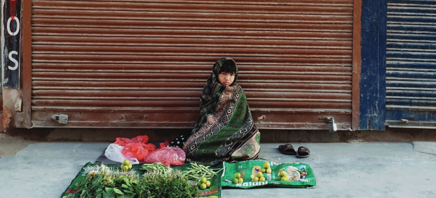 A Nepali child waits for customers as he sells vegetables in the early morning during lock-down amid the Covid-19 pandemic in Kathmandu, Nepal on June 12, 2020. [9]