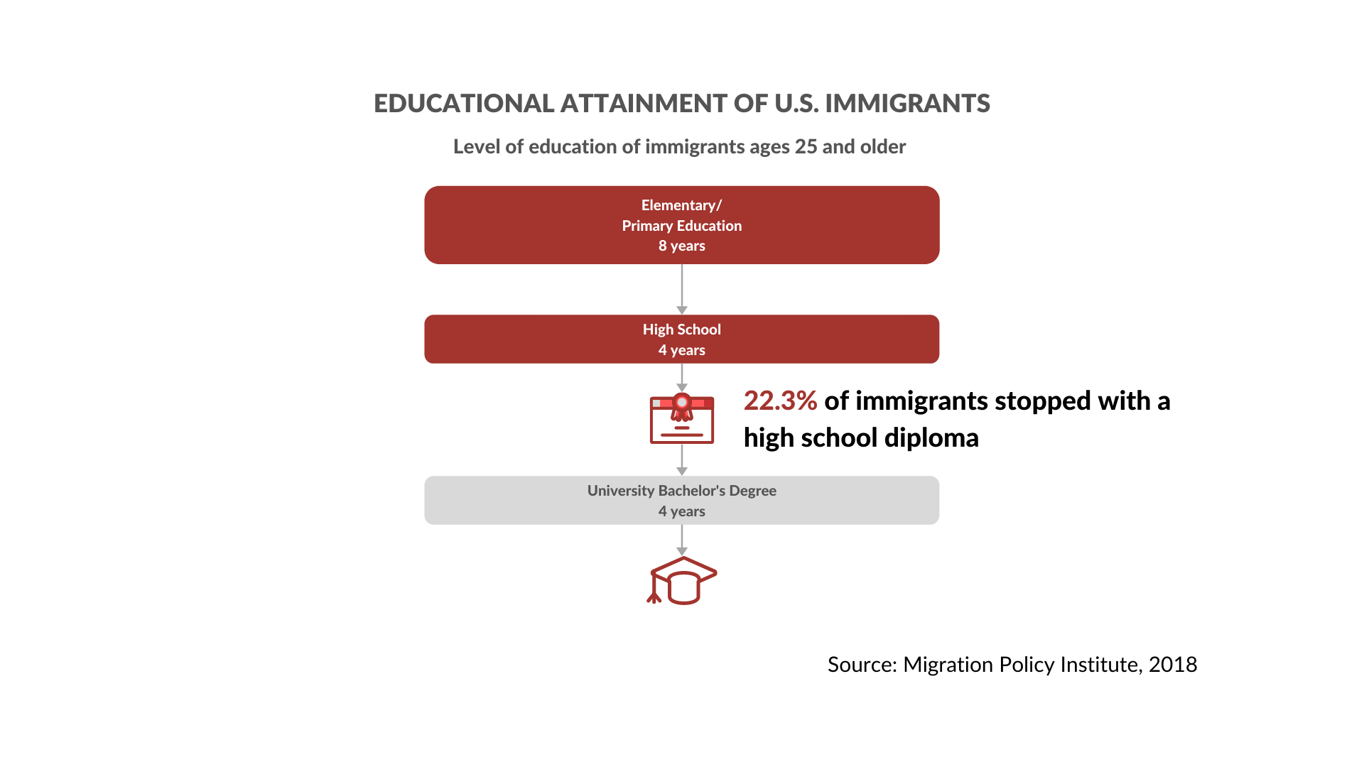 21% of the immigrant children live in a household where both parents have less than a high school degree.