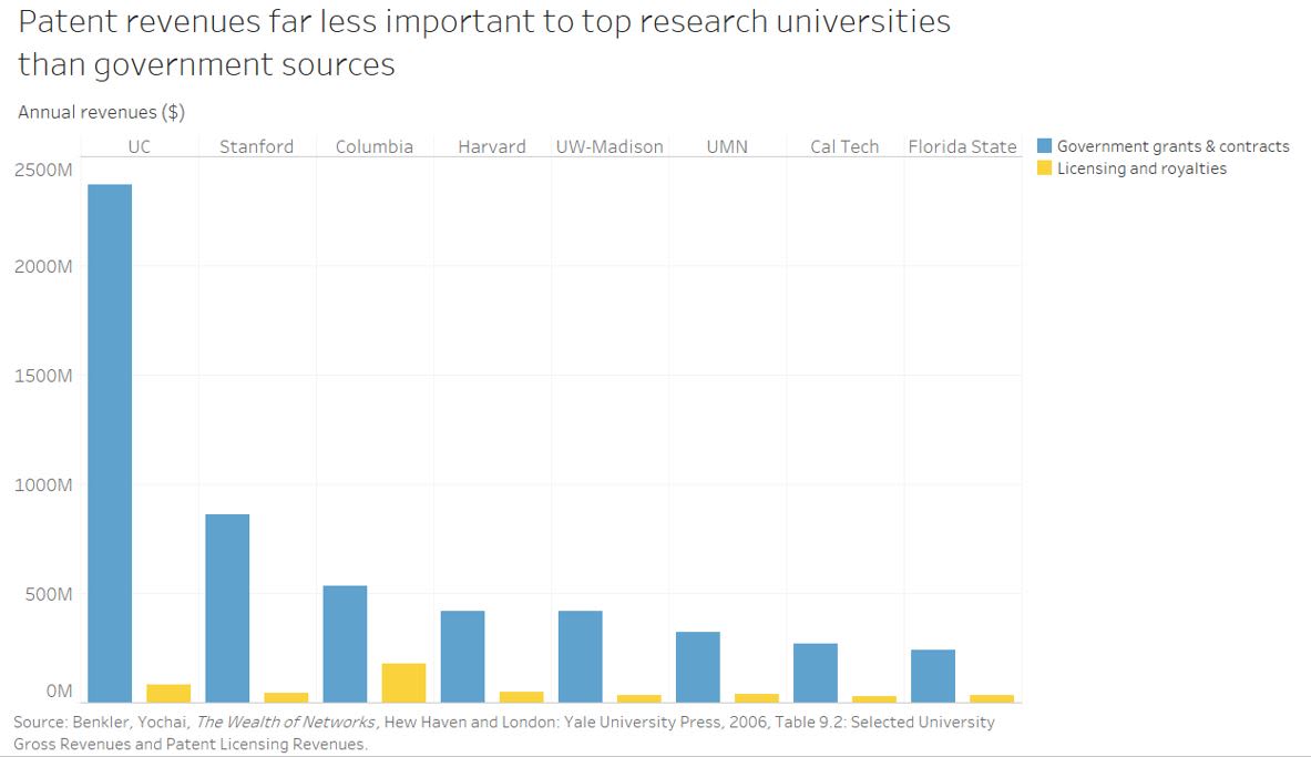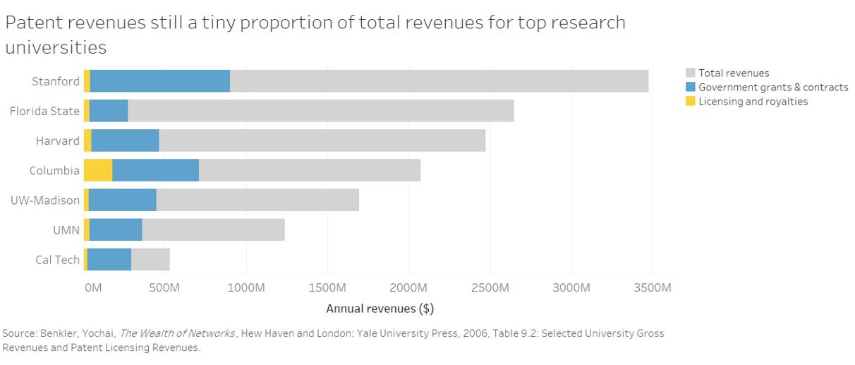 Despite this fact, however, patents continue to represent a relatively insignificant proportion of total revenues for even top research universities.