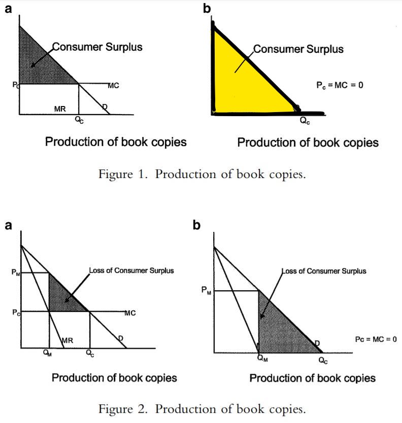 The fact that so many goods can be reproduced and distributed at effectively no marginal cost means that there is a lot of room for increasing consumer surplus through sharing.