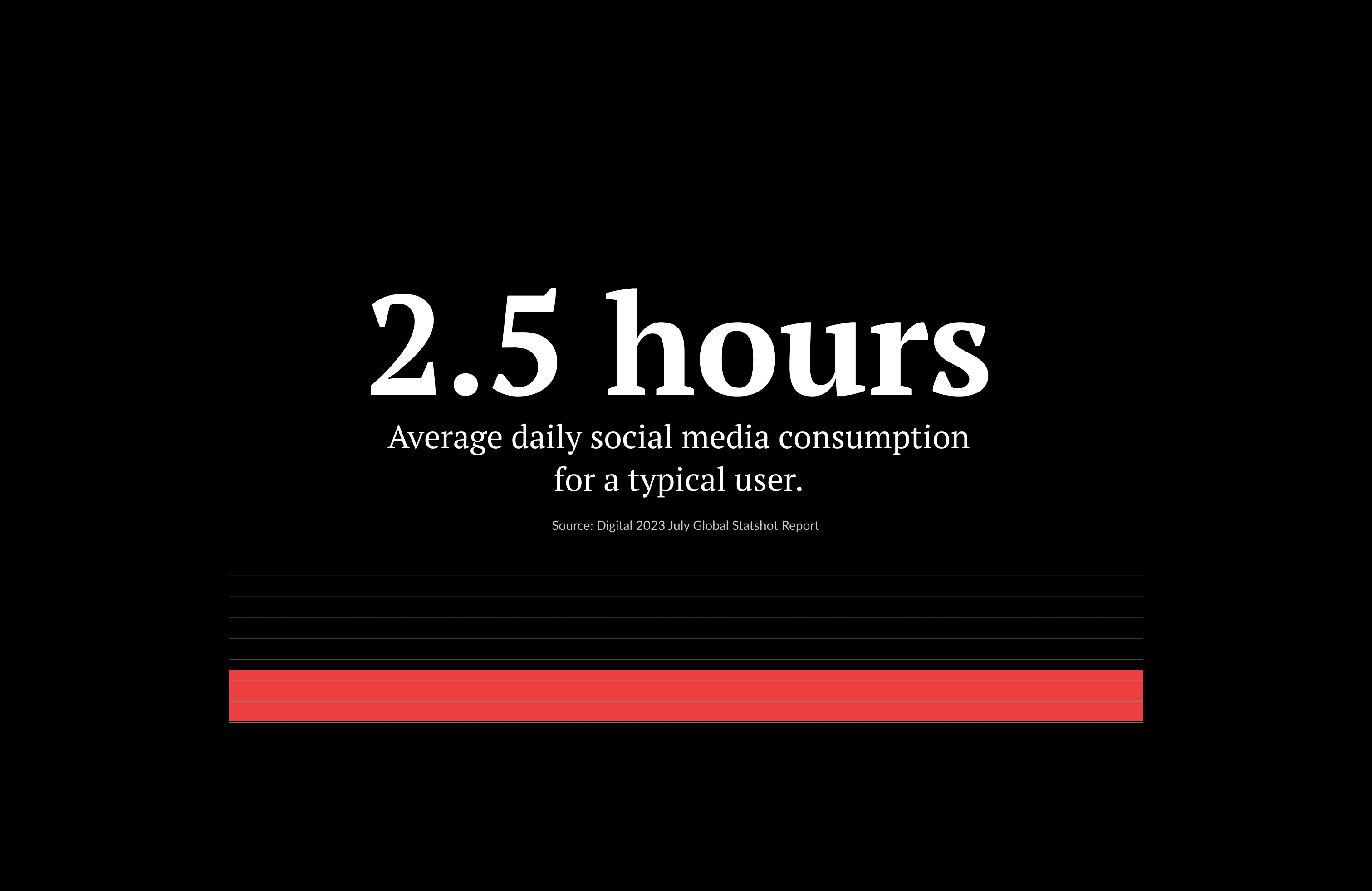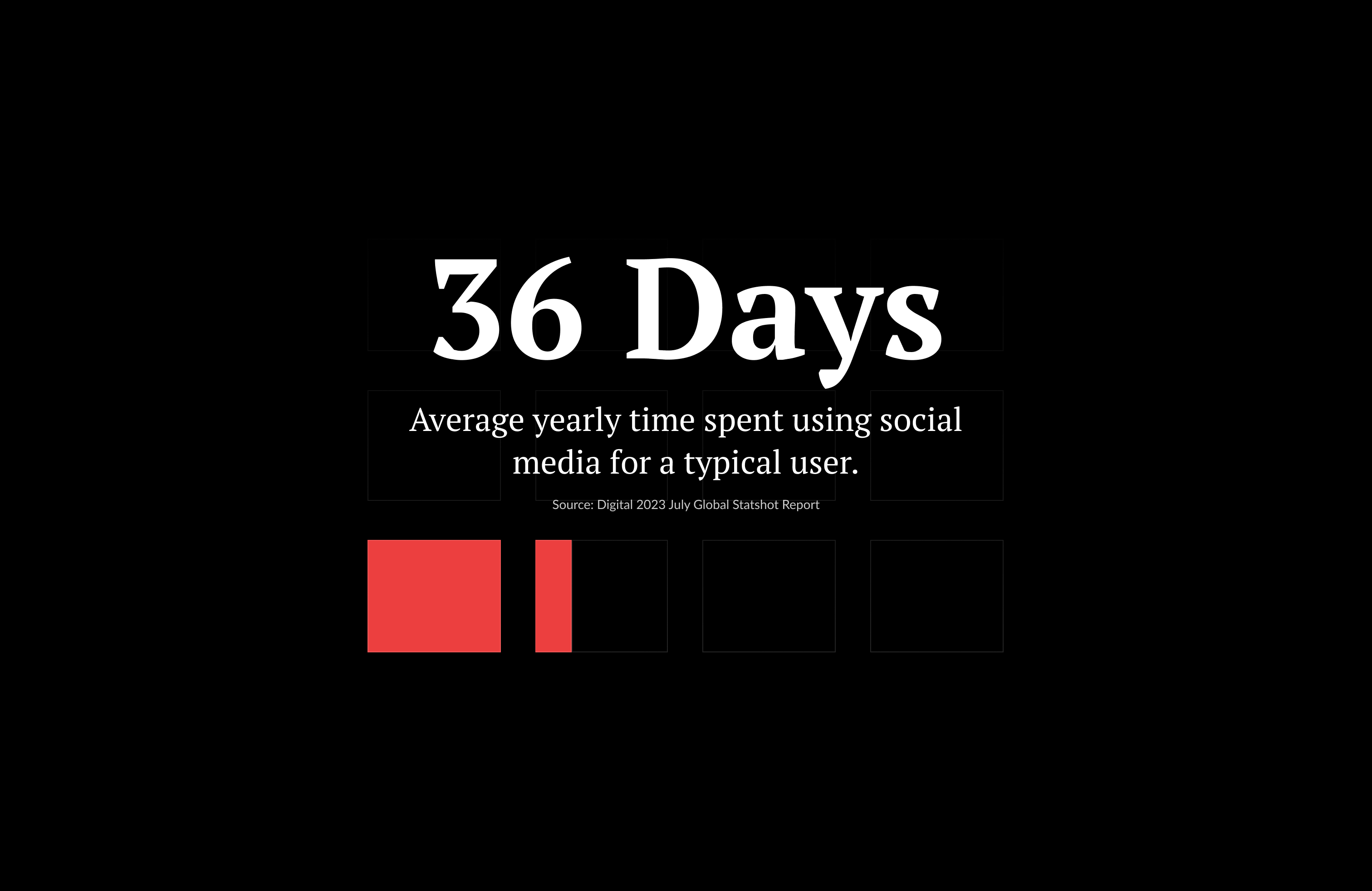- Al Jazeera. (2023, June 30). How Many Years Does a Typical User Spend on Social Media? [Website]. Retrieved from https://www.aljazeera.com/news/2023/6/30/how-many-years-does-a-typical-user-spend-on-social-media#:~:text=How%20much%20time%20on%20average,a%20little%20over%20a%20month.