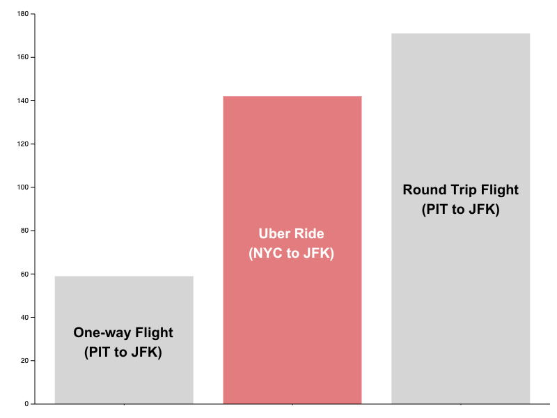 A one-way flight from Pittsburgh costs less than an Uber to JFK