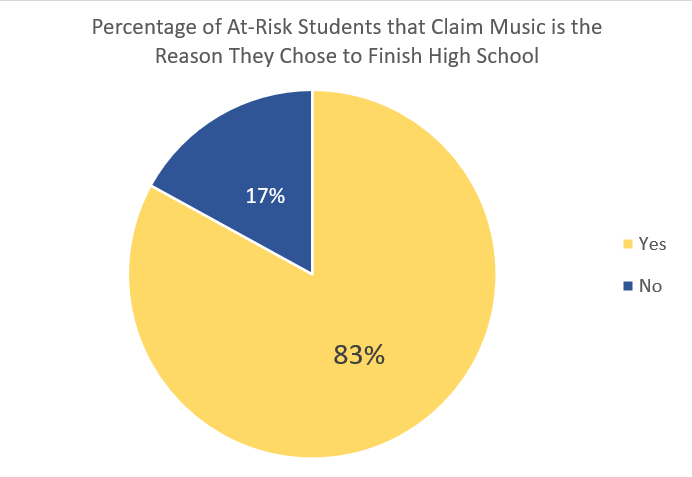 Not only does music have a direct impact on grades, but research also shows that students who are at risk of dropping out of school are more likely to finish school because of the arts and music. Students who participated in the study showed a higher engagement in arts and music classes than during their general education classes.