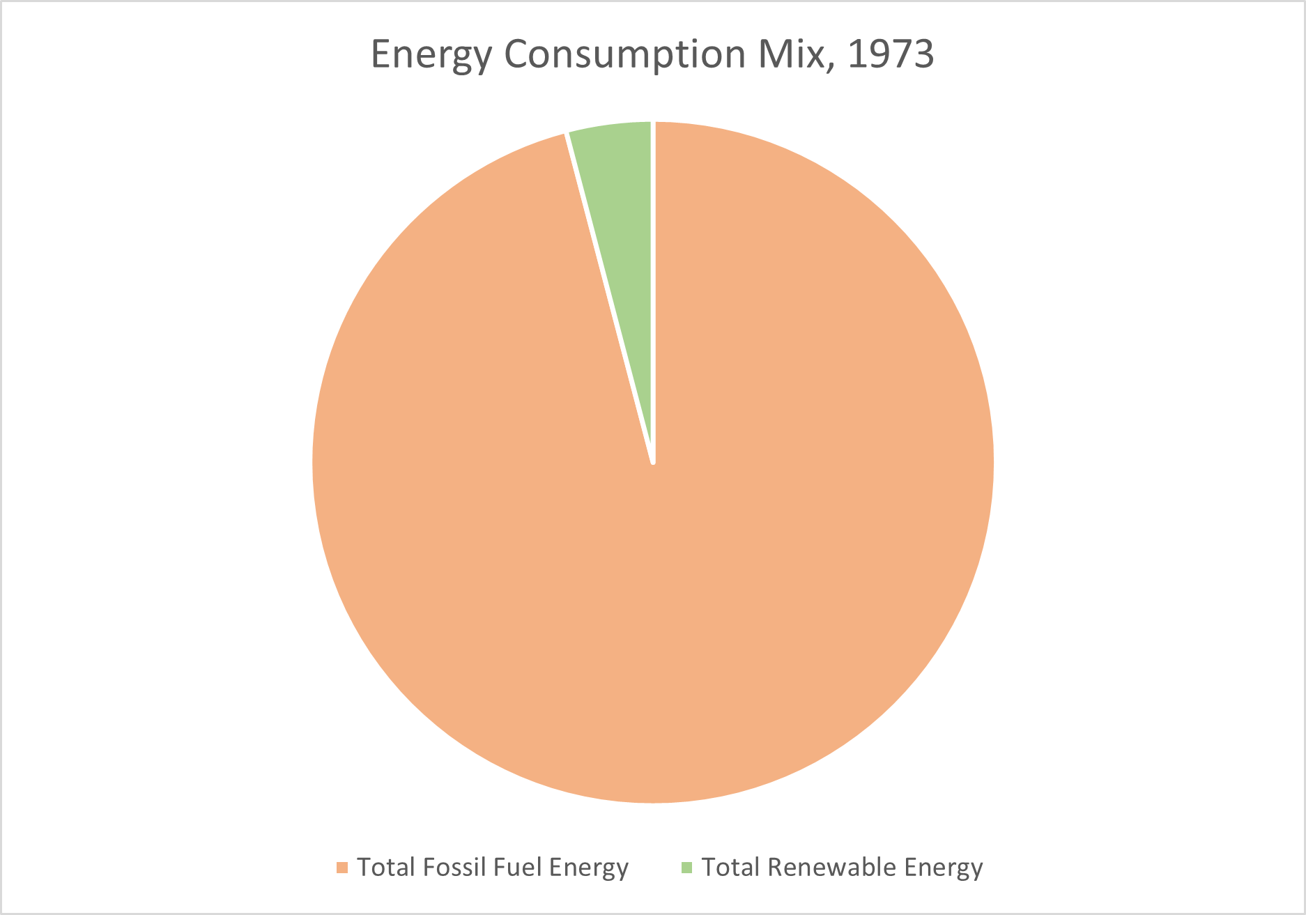 The US has improved its Energy Consumption Mix since 1973 in favor of renewable energy sources.